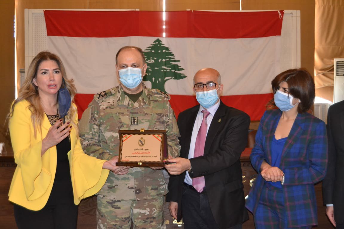 بعد ذلك، كرم يمق كلا من اللواء الأسمر والقائمقام ايمان الرافعي وإدارة المستشفى المظلوم فقدم لهم درع الفيحاء تقديرا لجهوده.