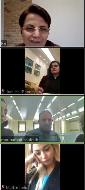 برعاية نقيب المحامين في طرابلس والشمال محمد المراد، و بالتعاون مع مركز ريستارت لتأهيل ضحايا العنف والتعذيب، نظم معهد حقوق الإنسان في نقابة المحامين في طرابلس جلسة حوارية لمجموعة “محامون ضد التعذيب”، حول دور المحامي في مواجهة كوفيد 19 ” الكورونا”، بحضور مديرة المعهد الأستاذة دوللي فرح، وعضو الهيئة الإدارية للمعهد الأستاذة: عُتيبة المرعبي، ومديرة مركز ريستارت في لبنان سوزان جبور، عبر الانترنت (أونلاين)، وذلك عبر تطبيق Zoom Cloud Meeting.