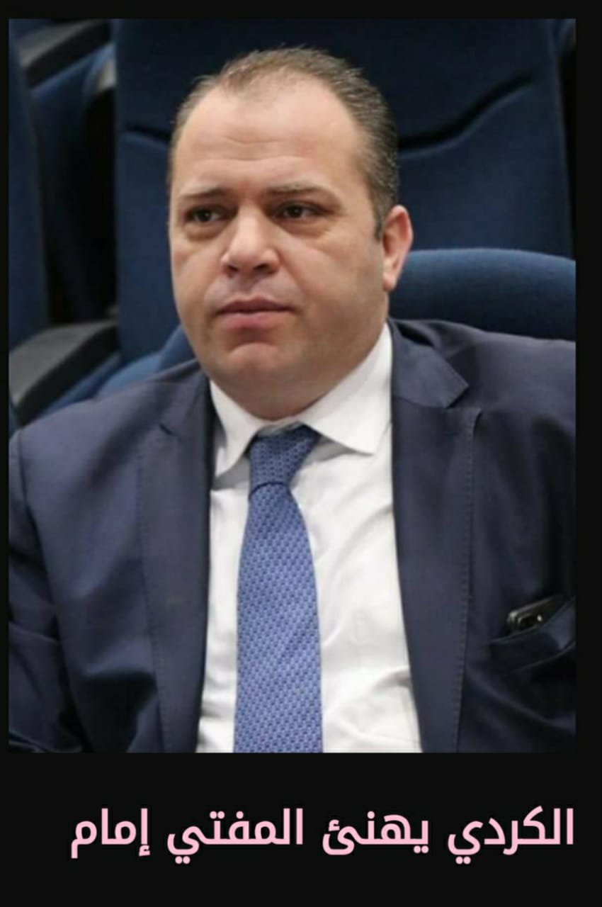 الكردي يهنئ المفتي إمام : نتمى لسماحتكم التوفيق لما فيه الخير للجميع