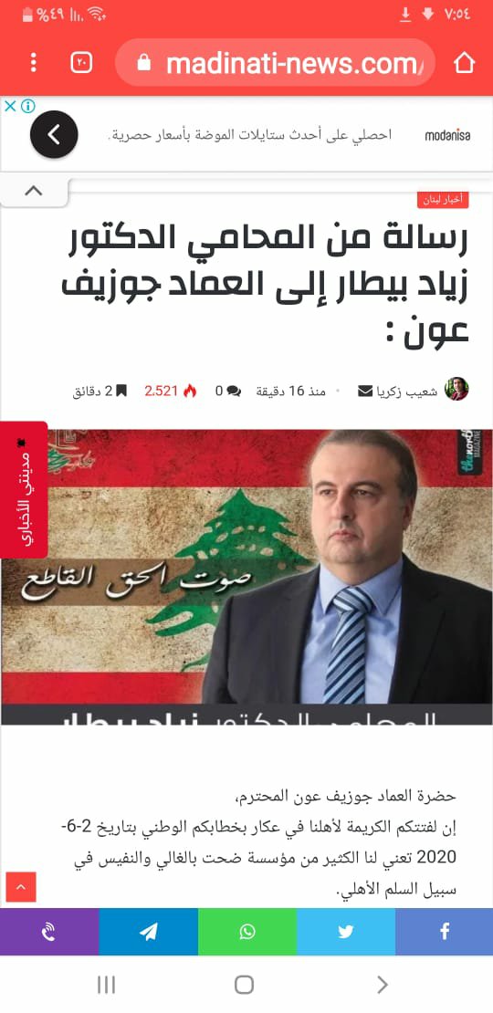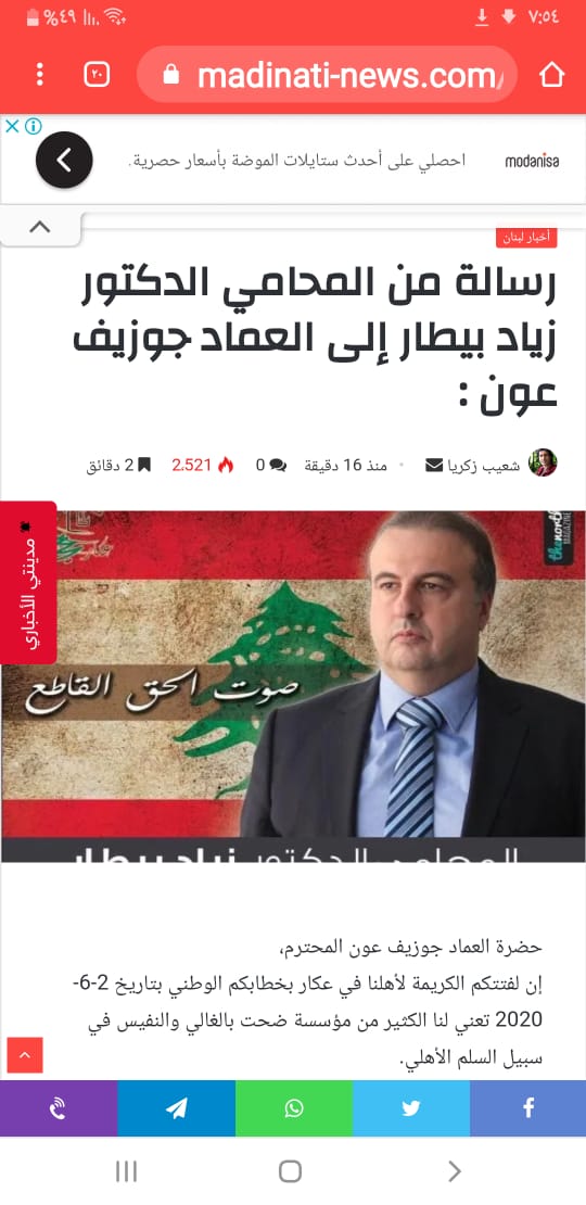 حضرة العماد قائد الجيش بجرأة ألحق نخاطبكم أن الحل ليس بنزول الجيش على الطرقات لحماية السلم الأهلي بل بمعالجة الأسباب التي ادت إلى هذه النتيجة حيث أصبح راتب الجندي لا يتعدى المئتي دولار وراتب العميد لا يتعدى التسعمئة دولار وكذلك راتب العامل والمدير في أي قطاع آخر. لذلك إن الشعب والجيش في خندق واحد لمواجهة الفقر والذل والقهر بمعالجة جذرية لوقف النزف بإقفال زواريب الهدر من معابر غير شرعية وضرائب غير مدفوعة وسرقات وسمسرات موصوفة وصولاً إلى إسترداد الأموال المنهوبة وإعتقال كل من سولت له نفسه بنهب خزينة الدولة والشعب والجيش .