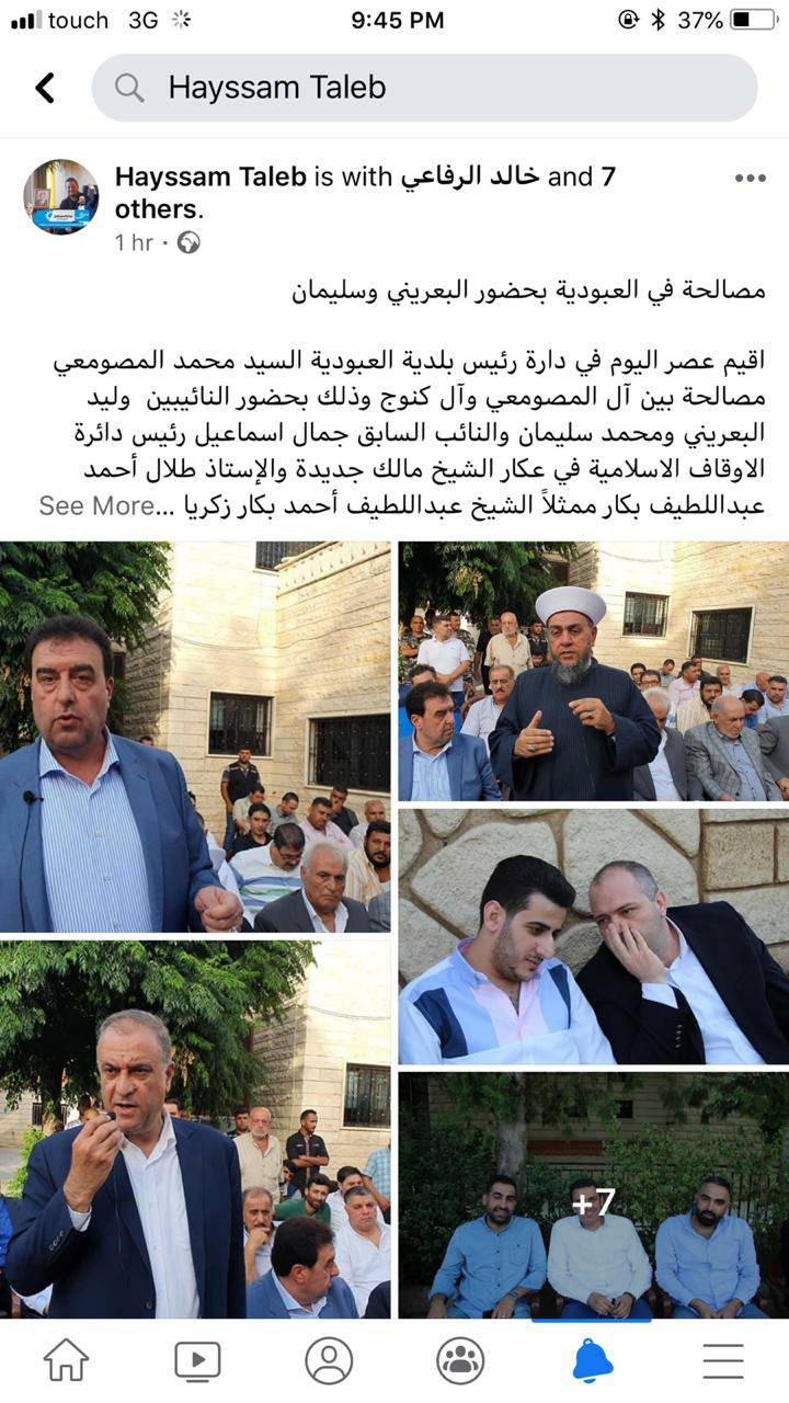 عُقدت في “العبودية – عكار” مصالحة عائلية بين كل من آل المصومعي و آل كنوج لإنهاء خلاف سابق بين العائلتين.
