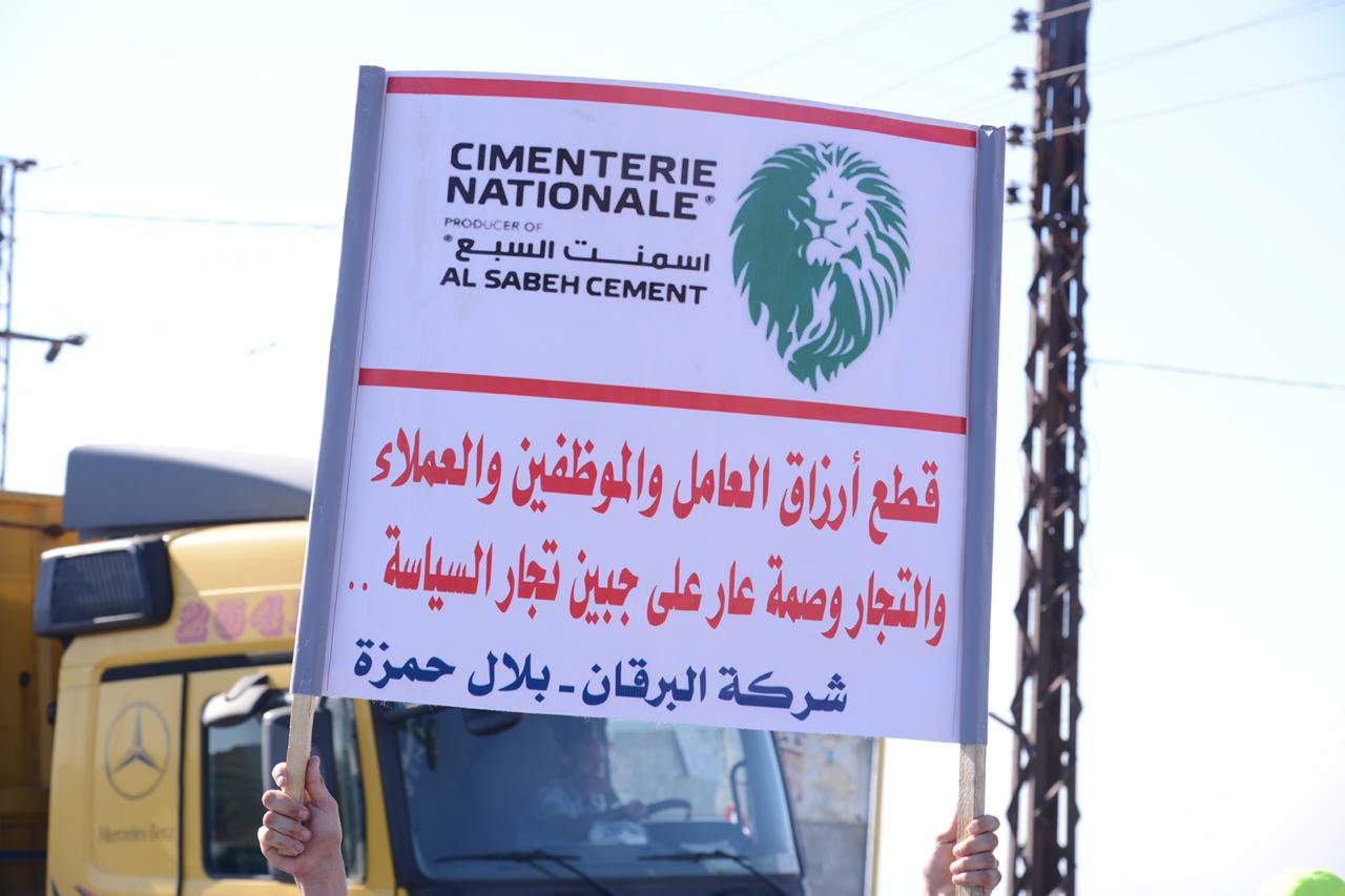 بدعوة من رئيس مجلس ادارة شركة البرقان لتجارة مواد البناء رجل الأعمال بلال حمزة، نفذ أصحاب الشاحنات ومؤسسات البناء وآليات نقل الاسمنت الجاهز وقفة احتجاجية على إستمرار إقفال مقالع شركة الترابة الوطنية – إسمنت السبع وركنوا آلياتهم على اوتوستراد شكا مفرق الارز، مقابل شركة الترابة الوطنية (السبع) وسط تدابير امنية مشددة اتخذها عناصر الجيش اللبناني والقوى الامنية منعا لقطع الطريق العام، وحذر المعتصمون من اتخاذ اجراءات تصعيدية في حال لم يستجب المسؤولون لمطالبهم ..كلمة رئيس مجلس ادارة شركة البرقان لتجارة مواد البناء بلال حمزةوقد تحدث بإسم المعتصمين رجل الاعمال بلال حمزة، الذي ناشد الوزارات المختصة اعادة فتح المقالع نظرا للتحديات والمصاعب التي يواجهها العمال واصحاب الشاحنات وشركات البناء ومنعا لتدمير الصناعة اللبنانية.وقال حمزة : واجب علينا جميعا” أن نقف وقفة تضامنية مع شركة الترابة الوطنية ومع خي الكل بيار ضومط ومع العمال والموظفين في وجه حيتان السلطة والمال الذين يتربعون على أوجاع الناس ويصدرون القرارات الظالمة ويقفلون ابواب الخير ويريدون تدمير الصناعة اللبنانية تحت حجج بيئية وصحية .جئنا إلى هنا حتى نقول للمعترضين اننا مع صحة الناس ولكن نحن ضد الكيدية وضد قطع أرزاق الناس .. نحن اولاد السبع وابواب السبع ممنوع تتكسر ..