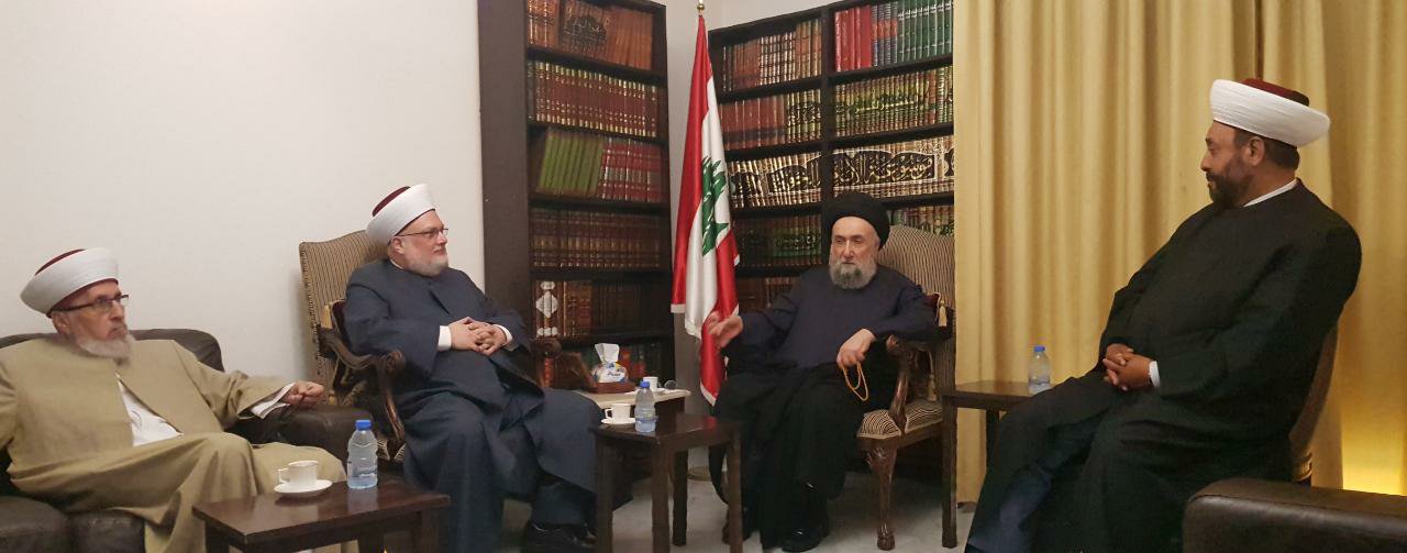 في اطار التضامن مع العلامه السيد على الامين؛ قام كلا من: رئيس المحاكم الشرعية الاسلاميه السنيه القاضي الشيخ محمد احمد عساف ؛ والقاضي الشيخ خلدون عريمط رئيس المركز الاسلامي للدراسات والاعلام؛ والشيخ يوسف بخور بزيارة العلامه السيد على الامين في مقر اقامته؛ مؤكدين على تضامنهم معه؛ وتقديرهم لمواقفه الاسلاميه والوطنيه الجامعه والهادفه لخدمة البلاد والعباد؛ والحريصه بشده على وحدة اللبنانين ؛ والداعية باستمرار لاقامة الدولة القويه العادله والمحتضنه بصدق لكافة مواطنيها والمقيمين على ارضها ٠