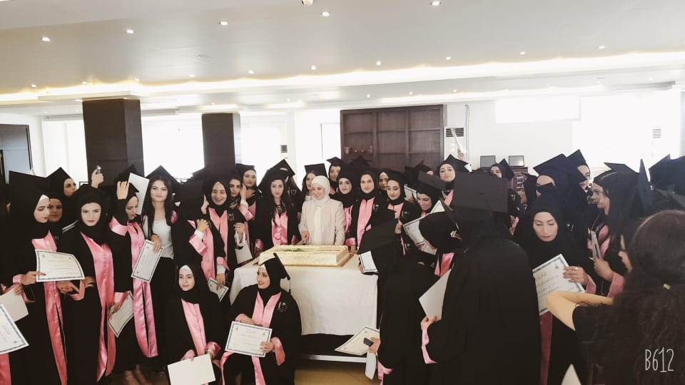 وبعدها تسلّمت المديرة باقة من الورود مقدّما من الطالبات، ووزعت شهادات التخرّج، وقُصّ قالب (الكاتو) احتفاءً بالتخرّج وختامًا التقطت الصور التذكارية.