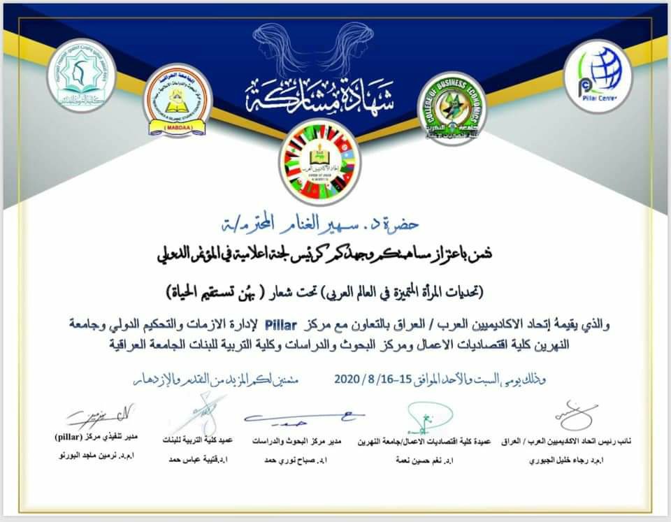 أقام إتحاد الأكاديمين العرب العراق بالتعاون مع pillar لإدارة الأزمات والتحكيم الدولي وجامعة النهرين