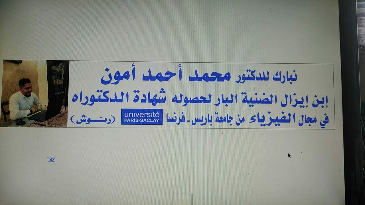 حصول ابن ايزال الضنية محمد أحمد أمون على شهادة الدكتوراه في الفيزياء من جامعة باريس – فرنسا