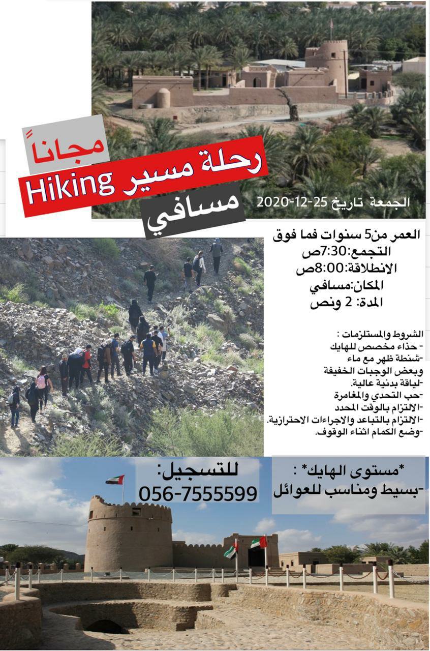 شاركت بدعوة خاصة صباح اليوم 25 ديسمبر 2020 في هايكنج مسافي والذي نظمته الفجيرة للمغامرات وكان الإقبال كبيرا من العائلات وكبار السن والأطفال الذين استمتعو بالرحلة التي استغرقت ما يقارب ساعتين ونصف.