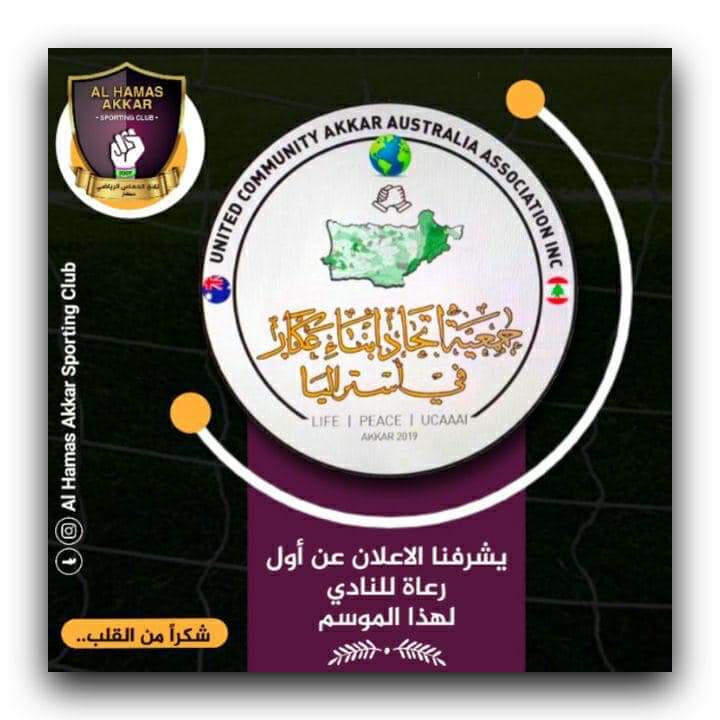 يشرفنا ويسعدنا أن نعلن عن أول رعاة للنادي لهذا الموسم : ” جمعية اتحاد أبناء عكار في أستراليا ”