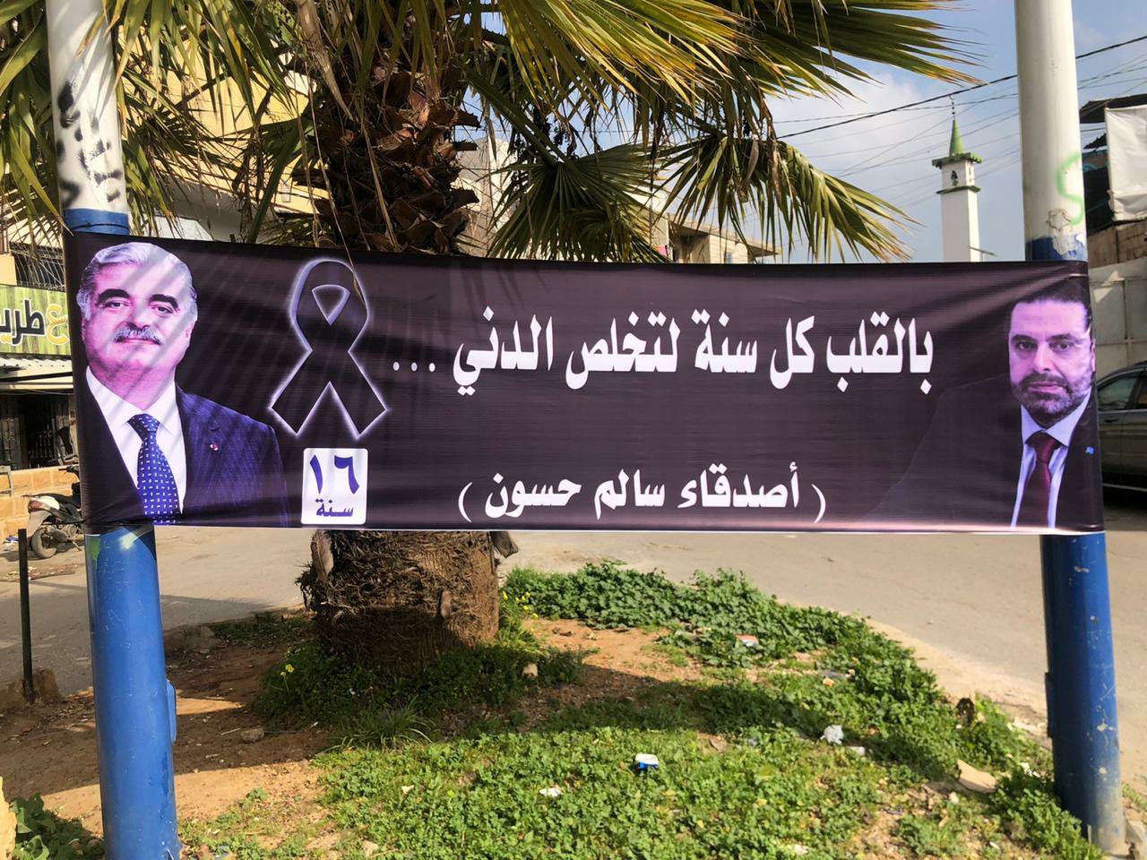 لمناسبة الذكرى السنوية ال ١٦ لاستشهاد الرئيس الشهيد رفيق الحريري ورفاقه الشهداء، وعشية ١٤ شباط رفع الناشط الاجتماعي والسياسي سالم حسون لافتات وصور عملاقة للرئيس الشهيد ونجله دولة الرئيس سعد الحريري في طرابلس ابي سمراء ساحة الشراع وساحة الضناوي وحديقة المنار ودوار الشلفه دوار صيدلية الشفاء عند طلعة الخناق وجسر الخناق وإحياء طرابلسية ..وقال حسون : نؤكد للجميع ان الرئيس الشهيد رفيق الحريري لا يزال في الوجدان ونحن مع مسيرته الرائدة بقيادة الرئيس سعد الحريري ومع تيار المستقبل والأمين العام الشيخ أحمد الحريري..