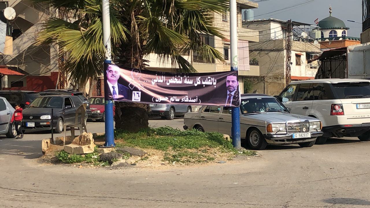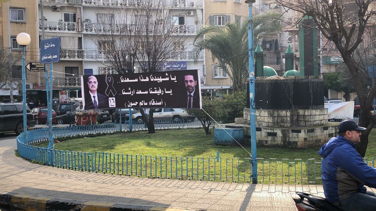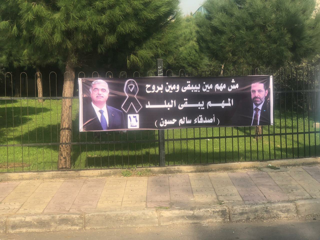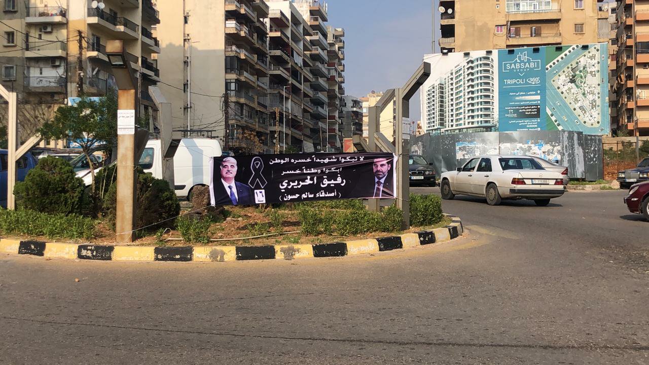 الناشط الاجتماعي سالم حسون يرفع اللافتات والصور للرئيس الشهيد ونجله الرئيس سعد الحريري في احياء طرابلس