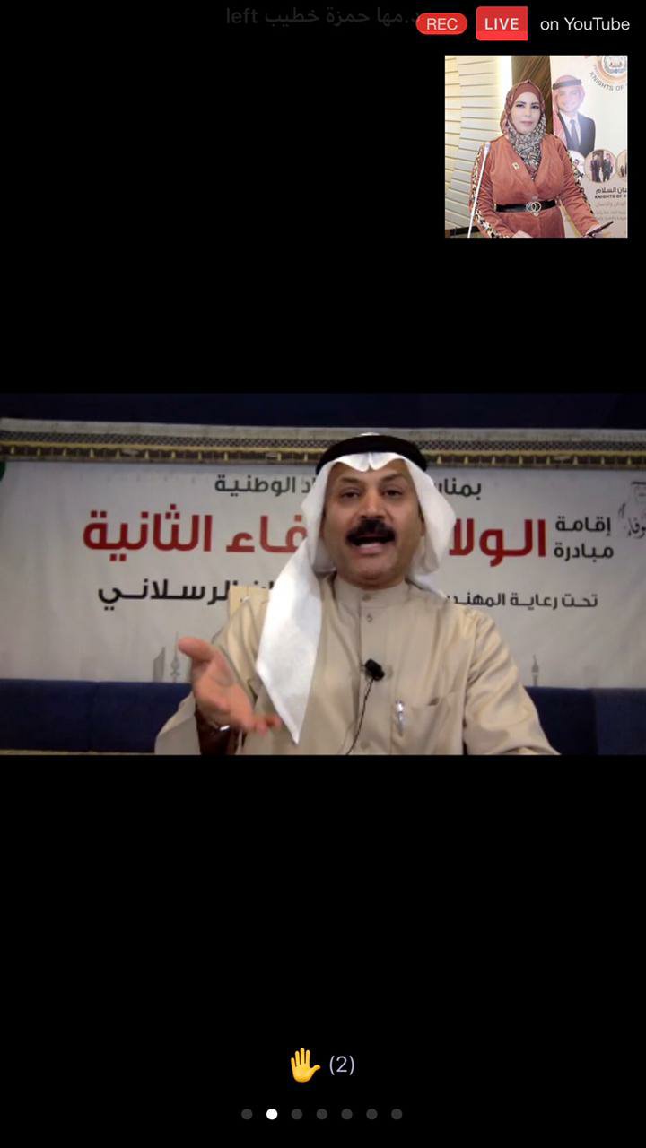 لاواصر المحبة بين البلدين الشقيقين دولة الكويت والمملكة الاردنية الهاشمية وتطرق لحملة الولاء للقيادة الحكيمة الرشيدة الحالية والوفاء لقائد الانسانية طيب الله ثراه .