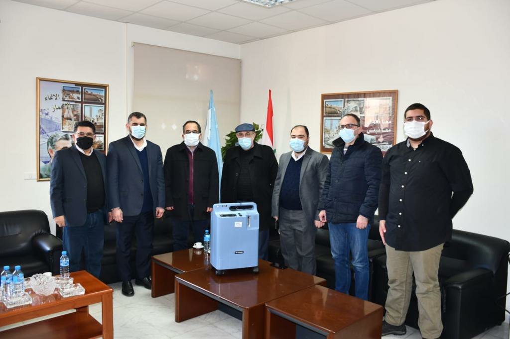 رئيس اللجنة الوطنية للقاح كورونا الدكتور عبد الرحمن البزري بالإضافة إلى زيارة لمحافظ الجنوب منصور ضو. وتم تسليم جمعية الصناعيين جهاز