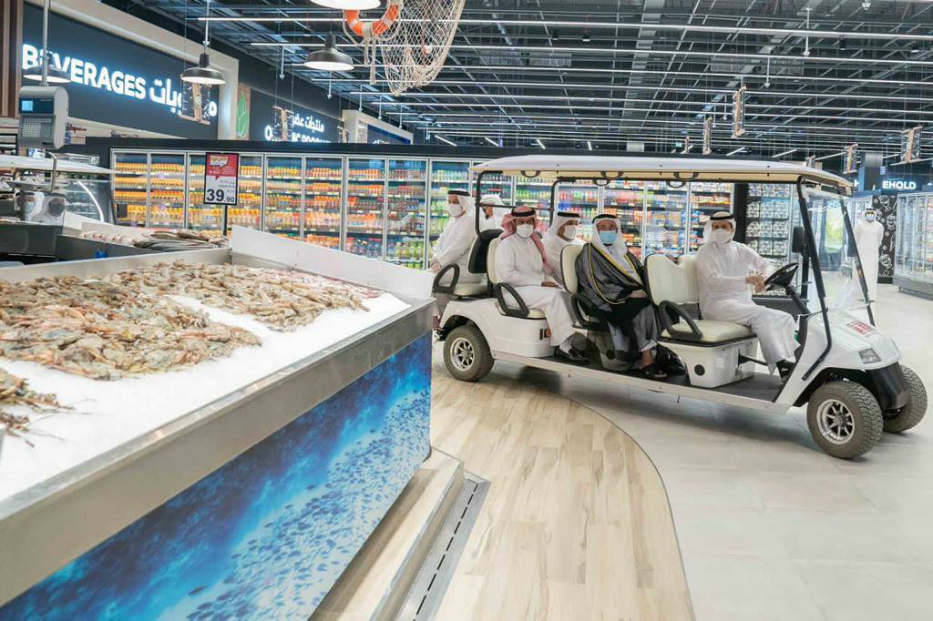 واطلع سموه خلال جولته على فرع جمعية الشارقة التعاونية، والذي سيخدم المجتمعات السكنية القريبة حيث يمتد على مساحة تزيد عن 8000 متر مربع، وتصل الطاقة الاستيعابية للمتسوقين إلى 5000 متسوق، ويتضمن العديد من الأقسام الجديدة منها الإلكترونيات والتجميل والمأكولات الذي يشمل الطهي الحيّ والشواء وردهة لتناول الطعام وغيرها الكثير.