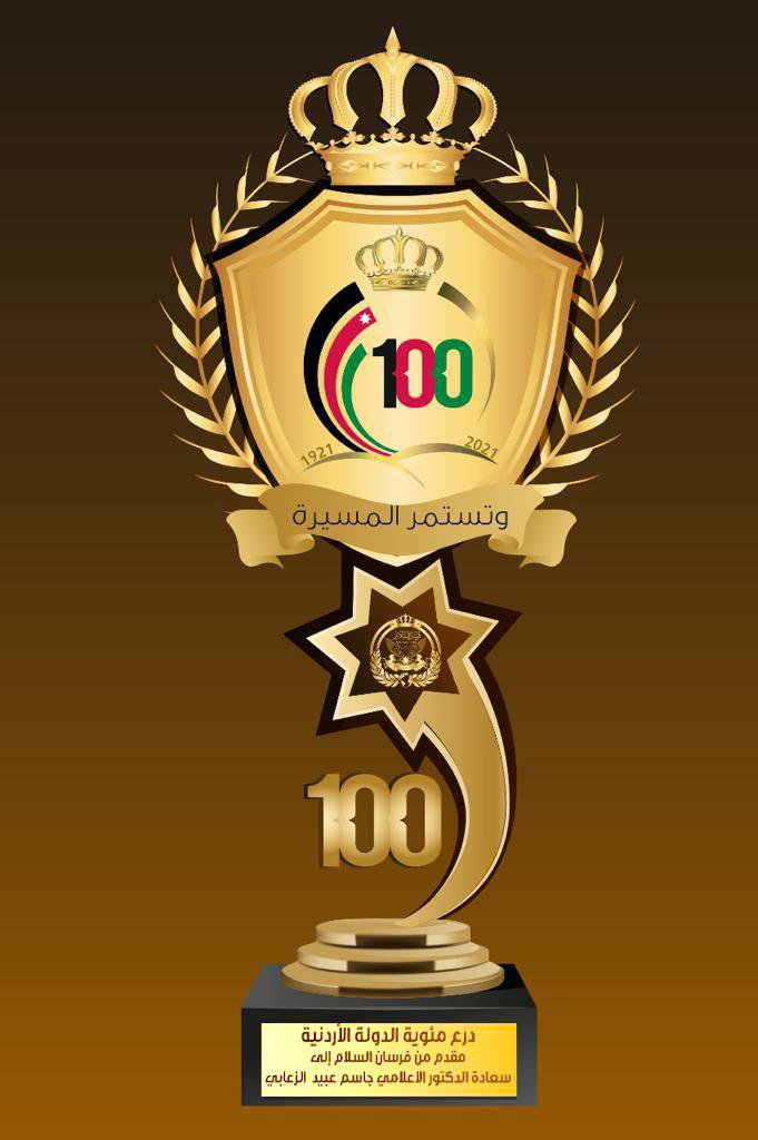 نال الكاتب والإعلامي الإماراتي المستشار الدكتور جاسم عبيد الزعابي درع مئوية الدولة الأردنية من فرسان السلام .