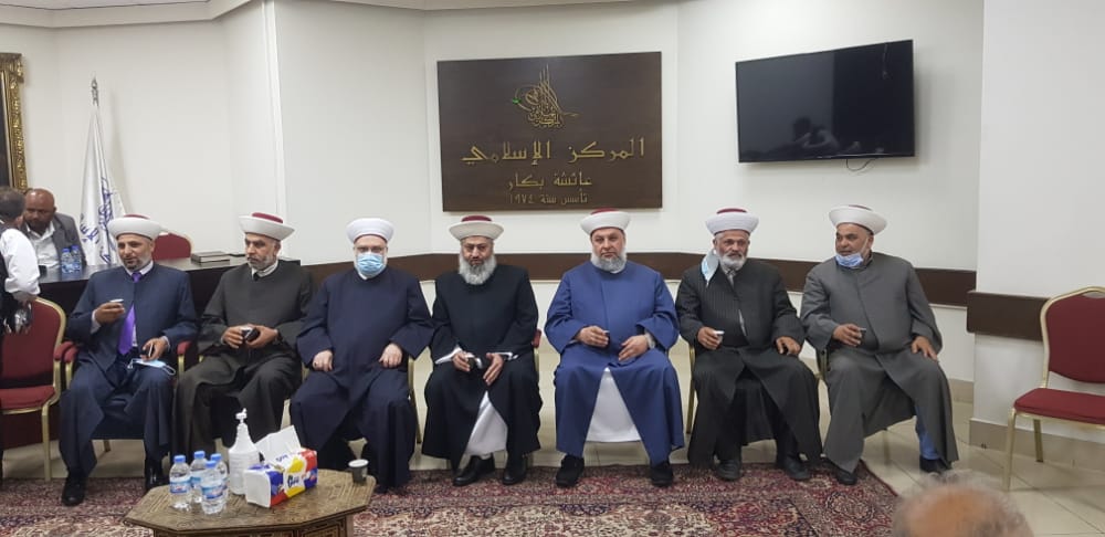 سماحة المفتي الشيخ زيد بكار زكريا مع وفد علمائي يعزي بوالدة سماحة الشيخ القاضي محمد عساف رئيس المحاكم الشرعية العليا.