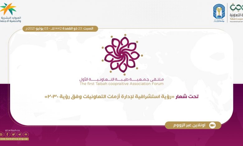 بالتزامن مع اليوم الدولي للتعاونيات اقامت الجمعية التعاونية متعددة الأغراض بجامعة طيبة ملتقى طيبة التعاونية الأول تحت شعار رؤية استشرافية لإدارة أزمات التعاونيات وفق رؤية ٢٠٣٠ عن بعد، ضمن عدد من الجلسات النقاشية وأوراق العمل التي بدأت صباح يوم أمس ، والجدير بالذكر أن اليوم الدولي للتعاونيات هو احتفال سنوي بالحركة التعاونية يُقام في أول سبت من شهر يوليو منذ عام 1923م.