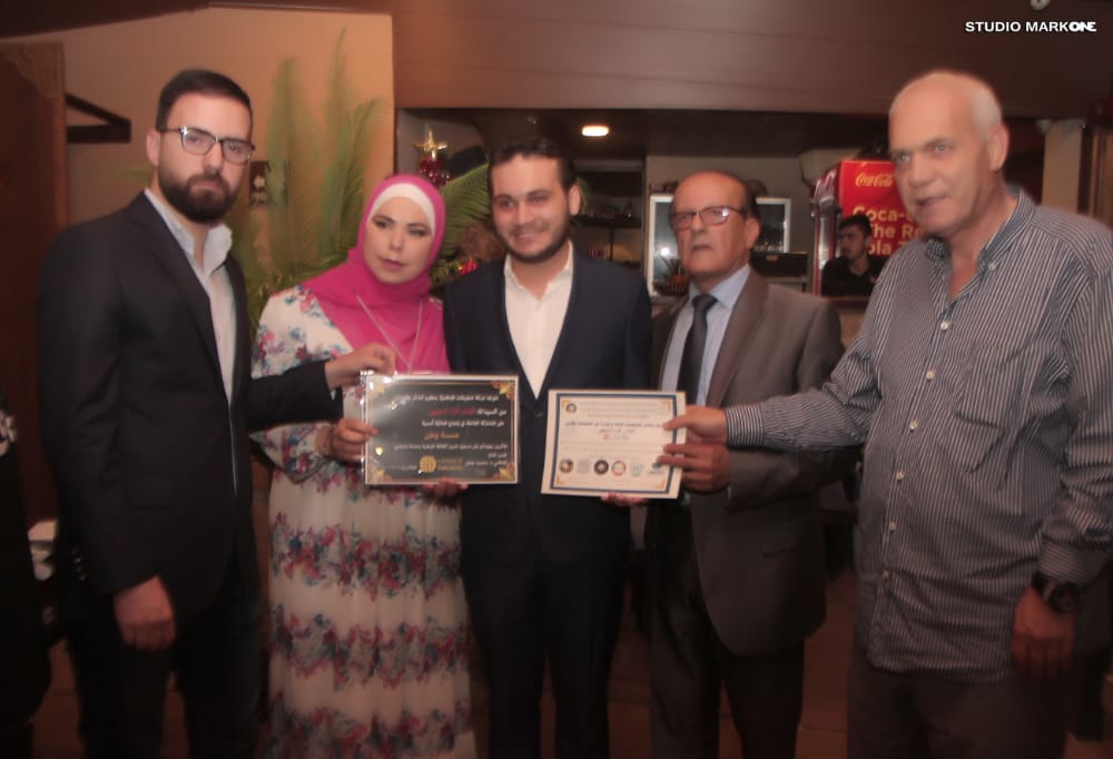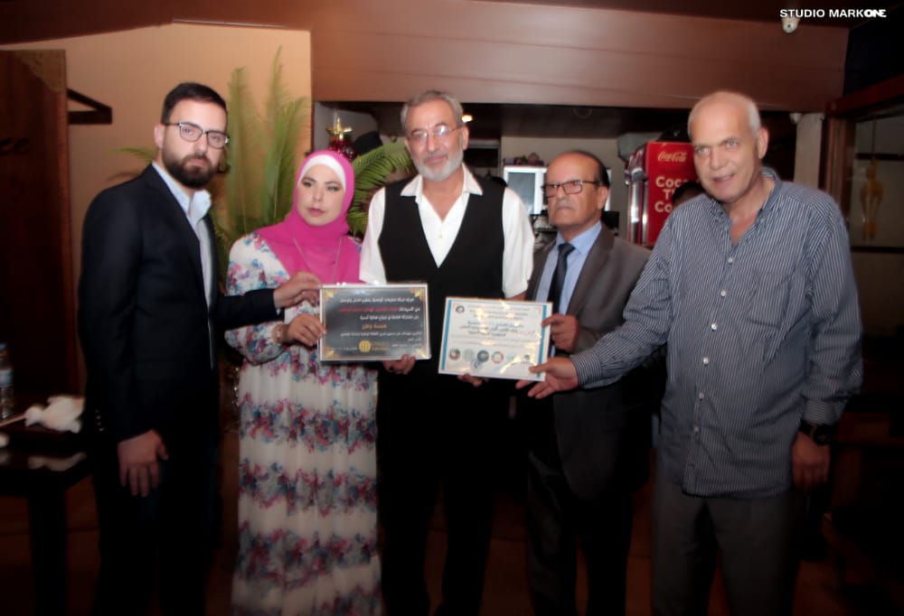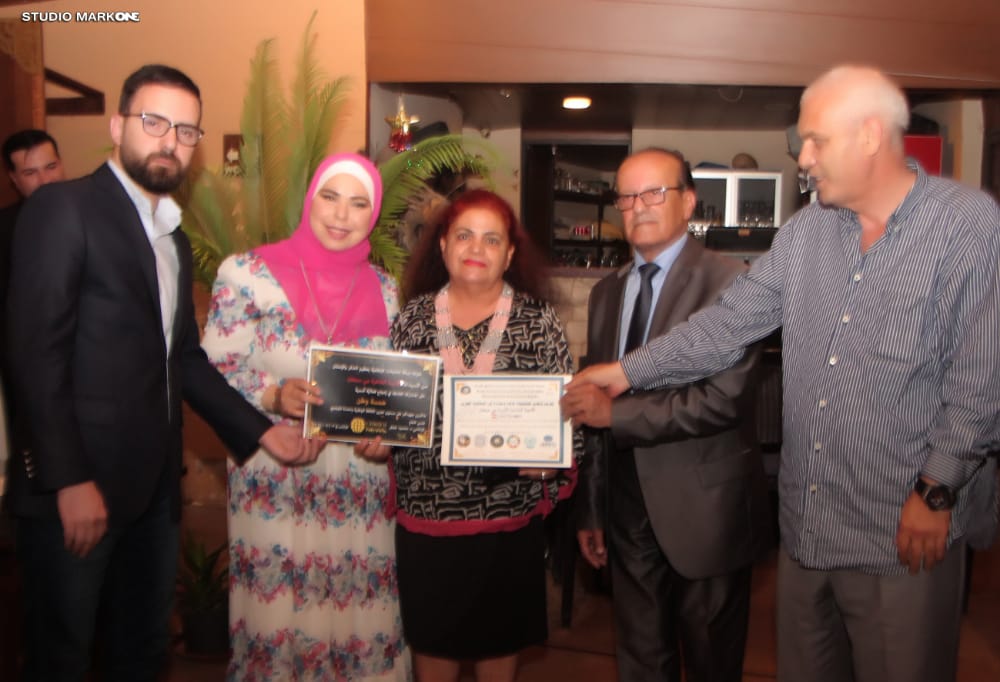 ومن الجمعية العربية الاوروبية للتنمية المستدامة وحقوق الانسان لرئيسها الدكتور ابراهيم سالم المغربي و التي تمثلها في لبنان الكاتبة والشاعرة عايده عيد وشارك بتقديم الشهادات الإعلامي الكبير عامر الشعار والكاتب والاديب الكبير رجا الأشقر
