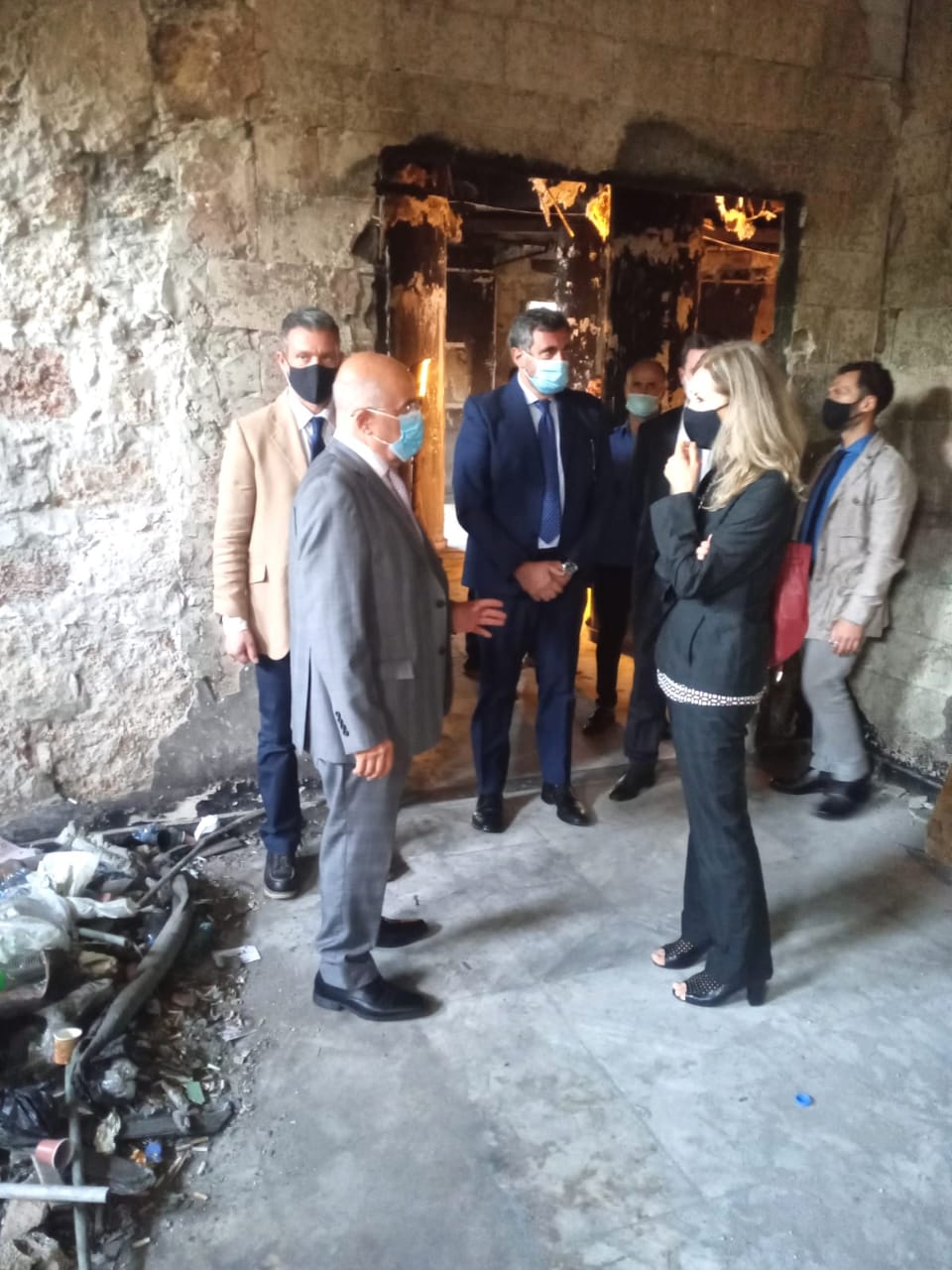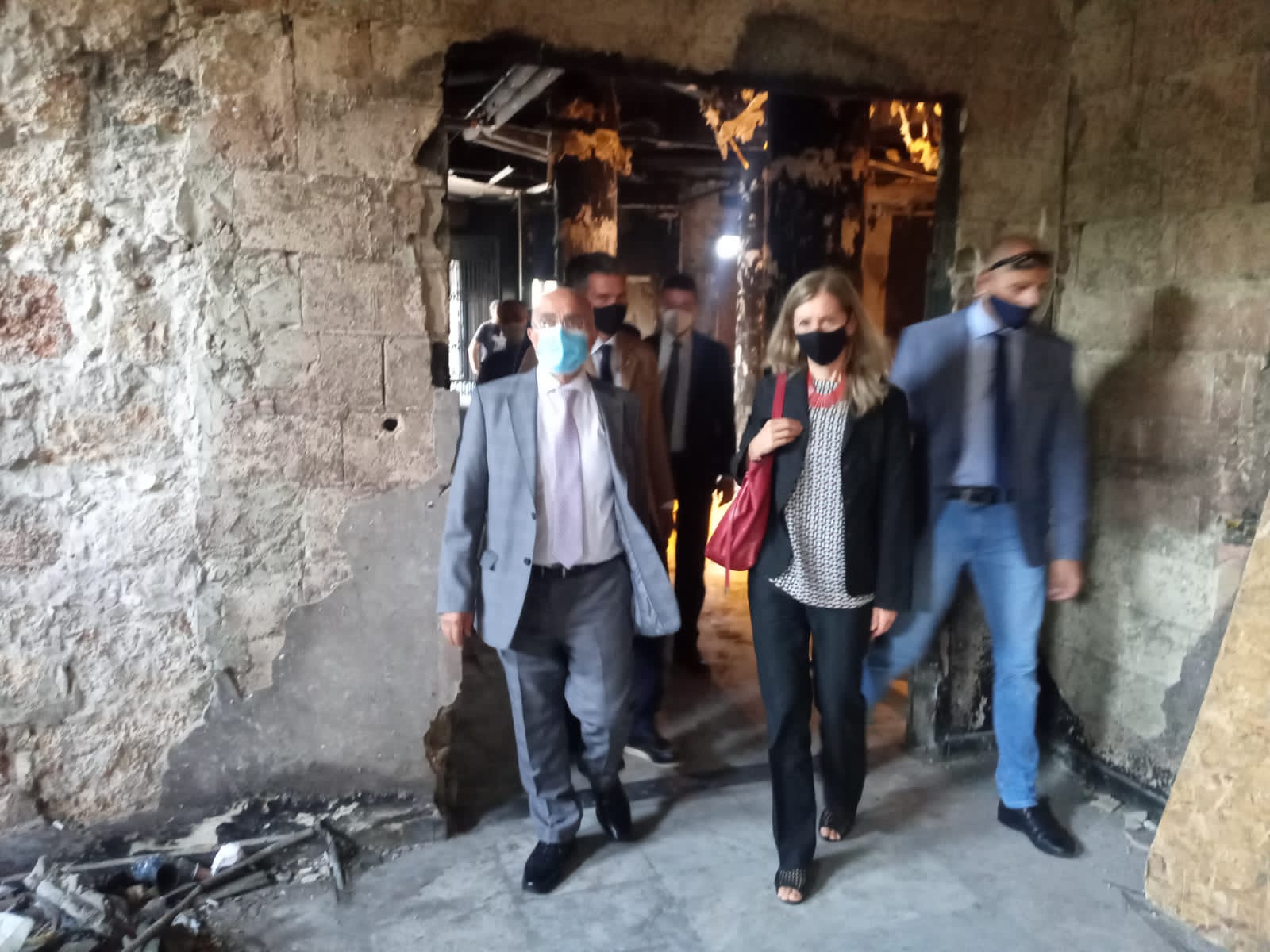 وكانت السفيرة بومبارديري بدأت زيارتها بتفقد طوابق القصر البلدي وغرفه التي طالها الحريق واطلعت على الأضرار.
