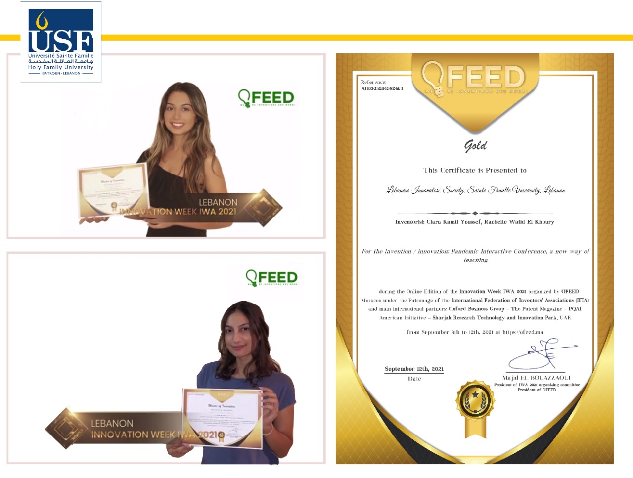 - ميداليّتان ذهبيّتان للطالبتين كلارا يوسف وراشيل الخوري عن مشروعهما Pandamic Interactive Conference : New way of Teaching.