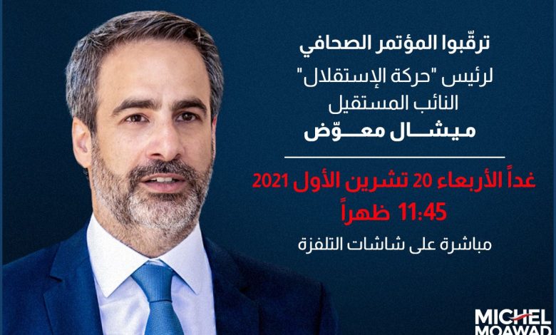 يعقد رئيس “حركة الاستقلال” النائب المستقيل ميشال معوض مؤتمراً صحافياً تعليقا على أحداث الطيونة- عين الرمانة وكلام الأمين العام لـ”حزب الله”، وذلك الأربعاء 20 تشرين الأول الساعة 11.45 ظهراً ويُنقل على عدد من شاشات التلفزيون المحلية.