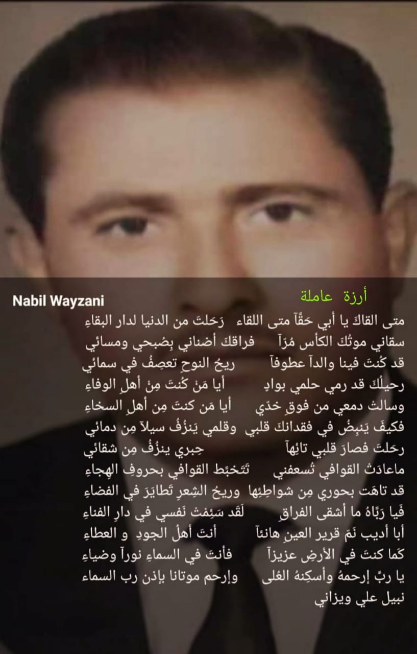 الرئيسية/منوعات/ثقافة وفنون/أرزة عاملة للشاعر نبيل ويزاني ثقافة وفنون أرزة عاملة للشاعر نبيل ويزاني أكتوبر 19, 2021 434 فيسبوك تويتر واتساب الشمال نيوز – عامر الشعار شارك هذا الموضوع:فيس بوكX أكتوبر 19, 2021 434 فيسبوك تويتر واتساب شاركها فيسبوك تويتر واتساب تيلقرام مشاركة عبر البريد طباعة