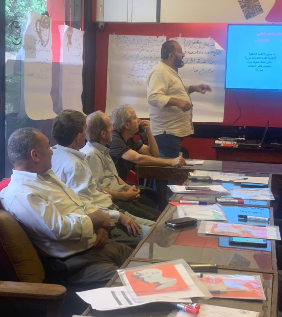 وشارك في الورشة، رئيس النقابة جميل طالب ونائب الرئيس هيثم اسعد وأعضاء من المجلس التنفيذي للنقابة وأعضاء من الهيئة العامة. وأدار الورشة المدرب رياض عيسى.
