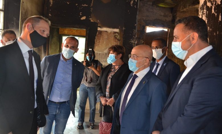 وفي الختام، جال السفير البريطاني في القصر البلدي، مطلعا على أضرار الحريق الذي طاله.