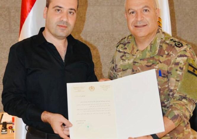 رئيس جمعية الثقة الخيرية الاجتماعية وليد قاسم تسلم رسالة شكر من العماد جوزاف عون