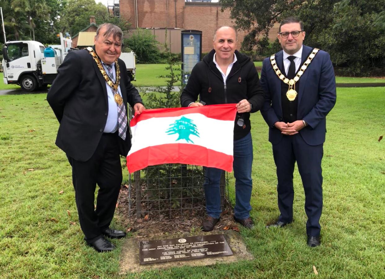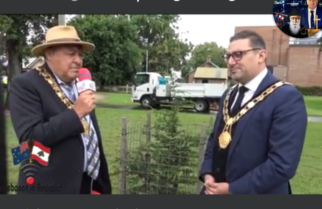 رئيس بلدية باراماتا ستيفن طوني عيسى يزرع شجرة استرالية Jacaranda Tree بجانب ارزة لبنان
