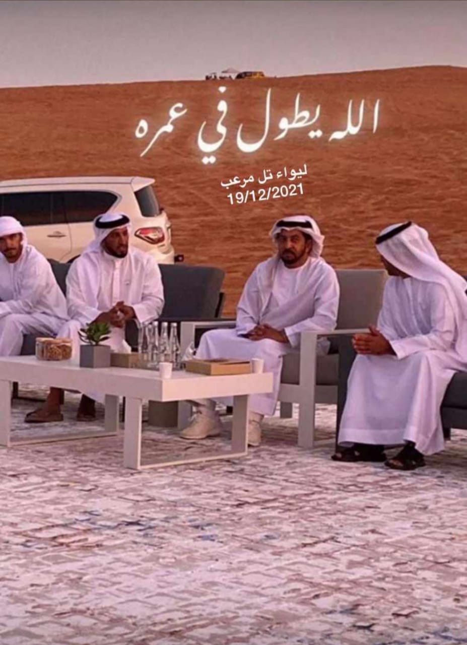 توجه الناشط الاجتماعي شوقي الموري بتهنئة سفير السلام والتسامح والإنسانية رجل الأعمال ورجل الإنسانية الاماراتي الدكتور محمد بن عشير المزروعي على رعايته الأعمال الخيرية ومشاركته في مهرجان تل مرعب في ابو ظبي ..