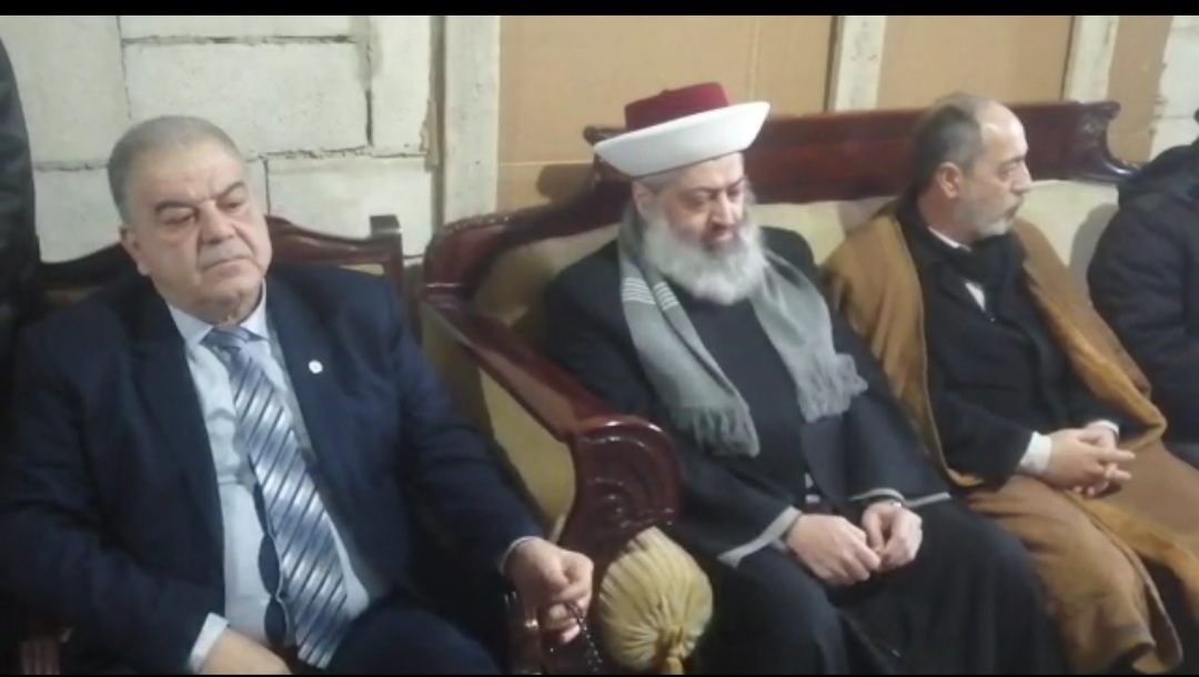 وللمناسبة ألقيت كلمات للمفتي زكريا والشيخ عصفور والشيخ رفاعي حمود ، شددت على ضرورة وأهمية الوعي عند أبناء المنطقة وعائلة الفقيد ، ونوهوا بدور الأستاذ نزار الموعي الذي سعى مع الفاعليات والعشائر ورجال الدين في سبيل ضبط النفوس ..