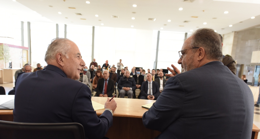 إستهل الرئيس دبوسي كلمته مرحبا بالوزير بوشكيان والحاضرين معربا عن إفتخاره بشخصية لبنانية وطنية نحقق معها الإنتصار على الذات بالرغم من كل الظروف الصعبة التي نمر بها في المرحلة الراهنة وكلنا إرادة مشتركة في بناء إقتصادنا الوطني من طرابلس الكبرى بكل قطاعاته وخدماته ونحن أيدينا متشابكة ببعضها البعض مع معالي الوزير بوشكيان لأنه شخصية تشبهنا بتطلعاتنا ولأنه عنوان لإنسان الرسالة في وطن الرسالة، ونحن شاركنا في بناء مجتمعات العالم ولا يعقل أن نفشل في بناء مجتمعنا”.