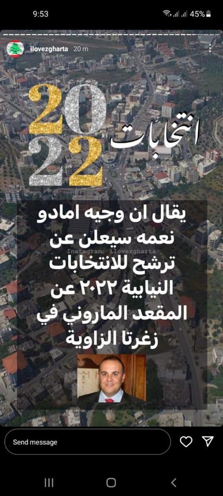 هذا وعلم موقع الشمال نيوز أن نعمة يعزم على الترشح للانتخابات النيابية عن المقعد الماروني في قضاء زغرتا ، كونه كان رقما” صعبا” في الانتخابات البلدية المنصرمة …