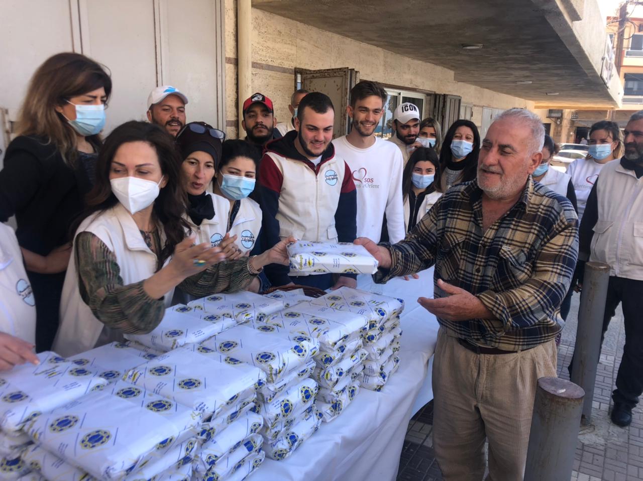 والهيئة العليا للاغاثة بتوزيع الحلويات والمعمول والبيض على اكثر من ٧٠٠ عائلة من مدينة الميناء ، بمناسبة عيد الفصح المجيد وشهر رمضان المبارك .. وقالت رئيسة المؤسسة مايا حبيب ان الاعياد في لبنان هي اعياد مشترك، وبمناسبة عيد الفصح المجيد وشهر رمضان الكريم ، قامت مؤسسة الطوارئ بالتعاون SOS Chrétiens d’Orient