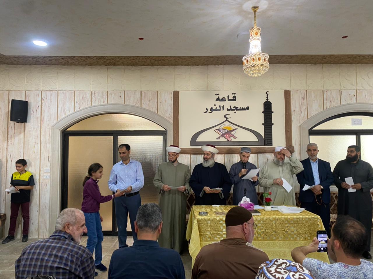 كما وشارك بدره مع سماحة المفتي الشيخ زيد بكار زكريا في حضور اختتام دورة القرآن الكريم في مسجد النور في برج العرب – الري عكار