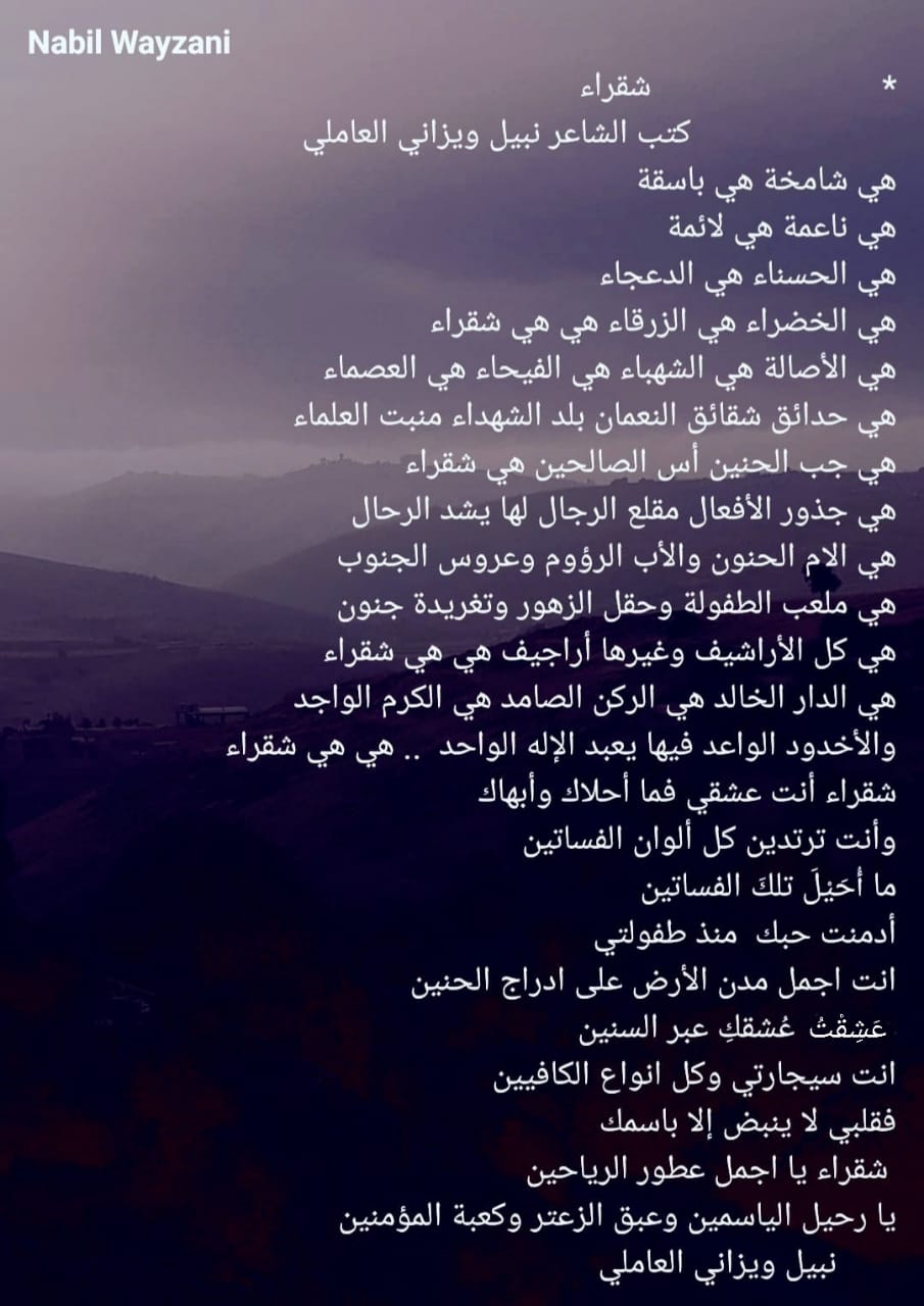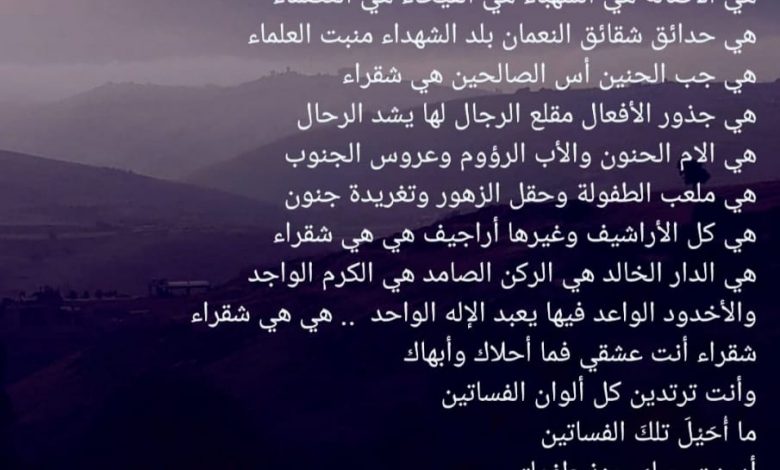 الرئيسية/منوعات/ثقافة وفنون/شقرا .. مسقط رأس الشاعر نبيل ويزاني ثقافة وفنون شقرا .. مسقط رأس الشاعر نبيل ويزاني مايو 20, 2022 401 فيسبوك تويتر واتساب شارك هذا الموضوع:فيس بوكX مايو 20, 2022 401 فيسبوك تويتر واتساب شاركها فيسبوك تويتر واتساب تيلقرام مشاركة عبر البريد طباعة