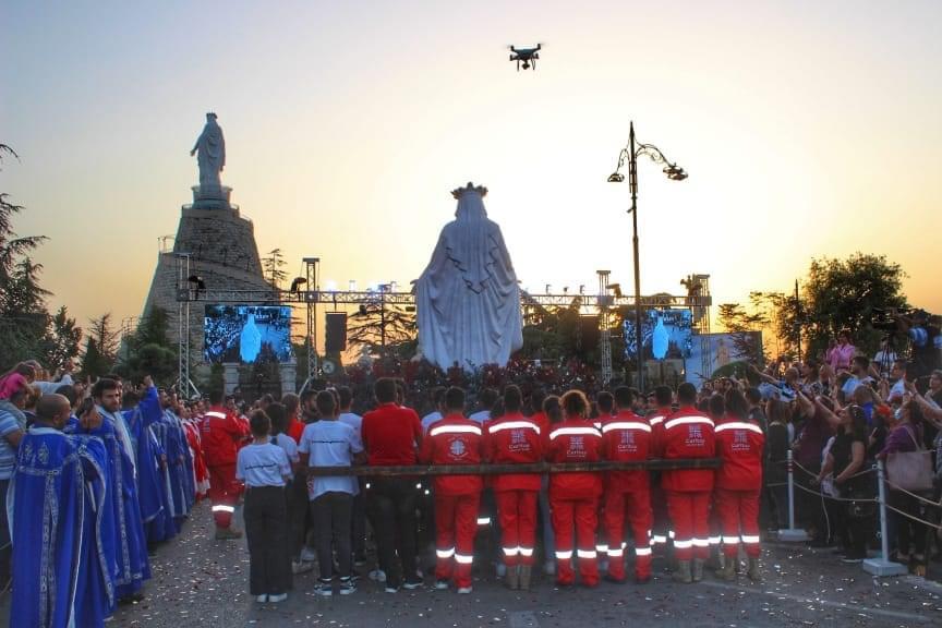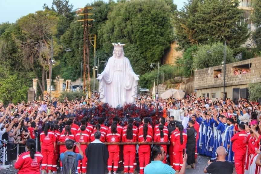 صلواتٌ وتسابيح وترانيم على نية لبنان وشعبه ضمن مهرجان إيماني حاشد في الباحة الخارجية لمزار سيدة لبنان حريصا وذلك لمناسبة اختتام الشهر المريمي..