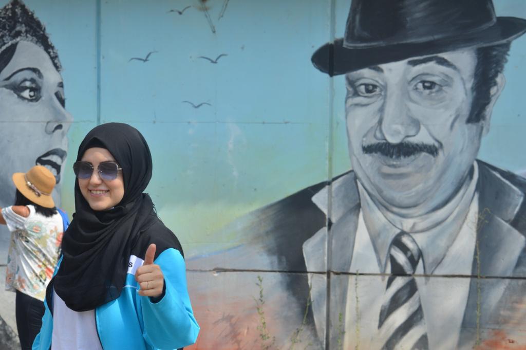 الجدارية والنصب وشجرة الزيتون صممتها و رعتها جمعية رحبة تجمع على ما شرحت لنا رئيسة الفوج الكشفي السيدة هلا منصور.