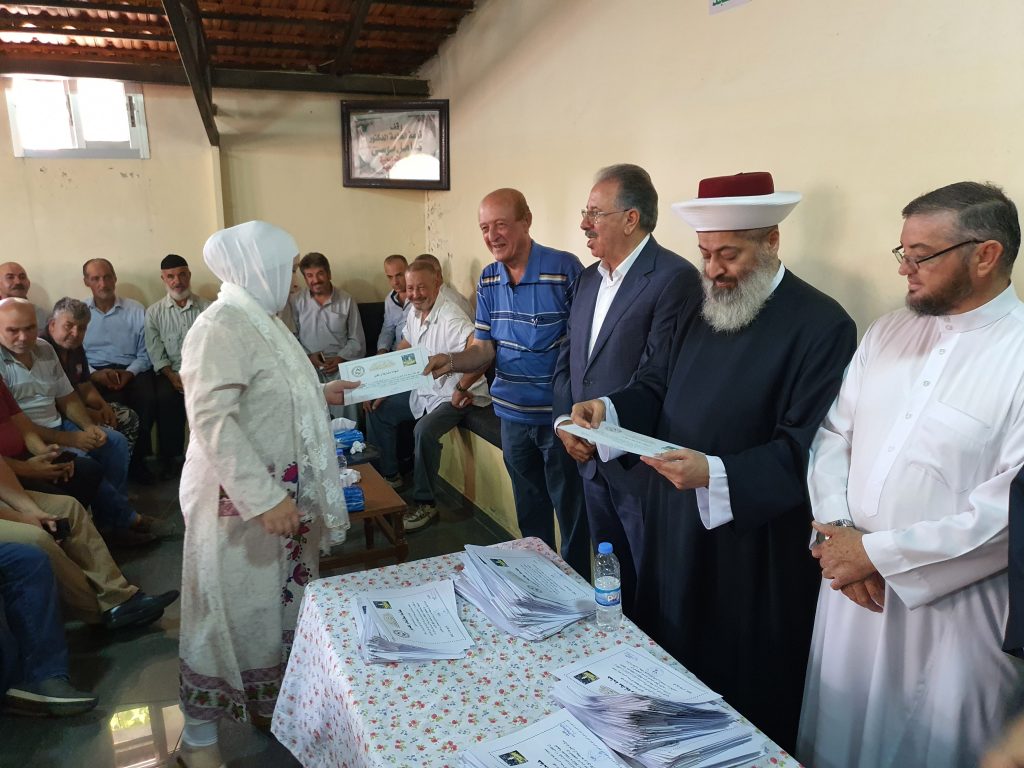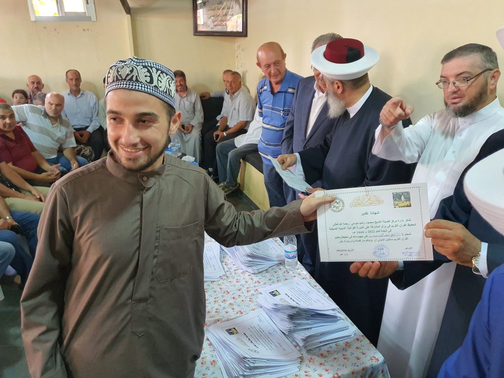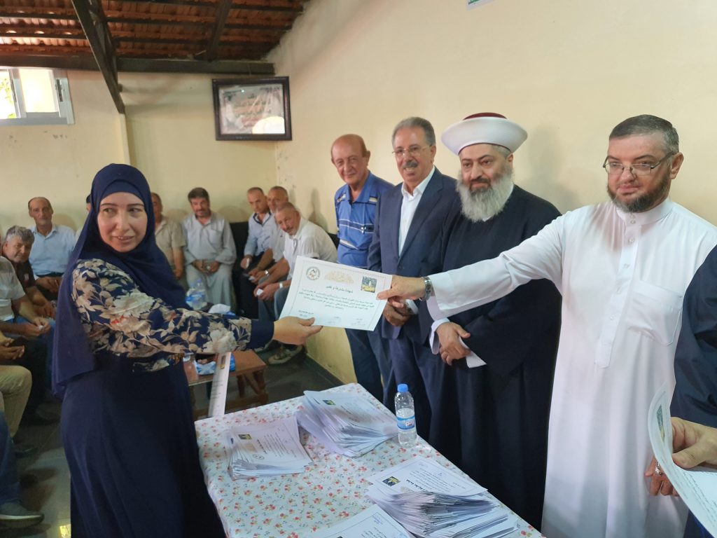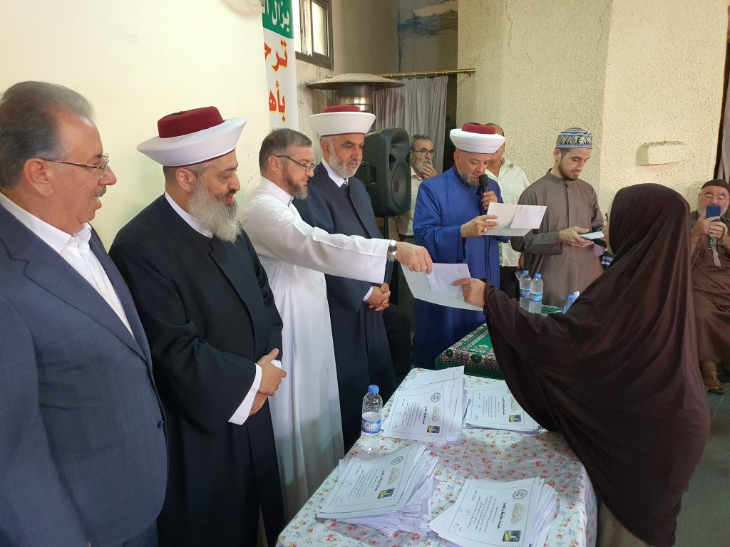 وختاما” شارك المفتي زكريا وطليس وموسى واسماعيل في توزيع الشهادات والعطايا على المعلمين والطلاب المشاركين في الدورة الدينية ..