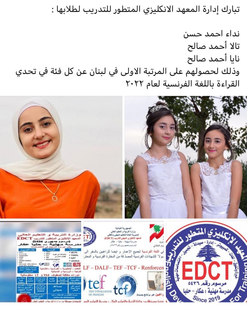 المعهد الإنكليزي المتطور يبارك لطلابه المتفوقين عن فئة التحدي باللغة الفرنسية