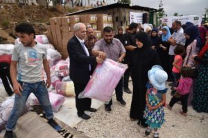 ثم تحدث المفتي الشعار الذي اعتبر ان ان مكرمة مملكة الخير والانسانية المملكة العربية السعودية ملكا وشعبا ومؤسسات الى جانب النازحين والى جانب المحتاجين والى جانب لبنان كل لبنان ، وارسل عبر الدكتور وليد البخاري تحية طيبة وتقدير وشكر الى جلالة الملك سلمان بن عبدالعزيز آل سعود والى شعب السعودية الطيب على الانسانية المستمرة تجاه ضيوفنا السوريين المنتشرين على مساحة لبنان …