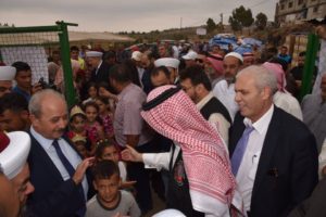 وتحدث مسؤول هيئة الإغاثة الإسلامية العالمية عبد الكريم الموسى حيث رحب بالبخاري والشعار وشرح باسهاب عن دور المخيم الانساني والوقوف الى جانب النازحين بتوجيهات من خادم الحرمين الشريفين الملك سلمان بن عبدالعزيز آل سعود حفظه الله ورعاه ..