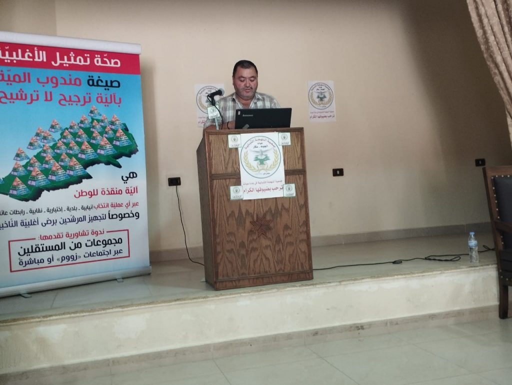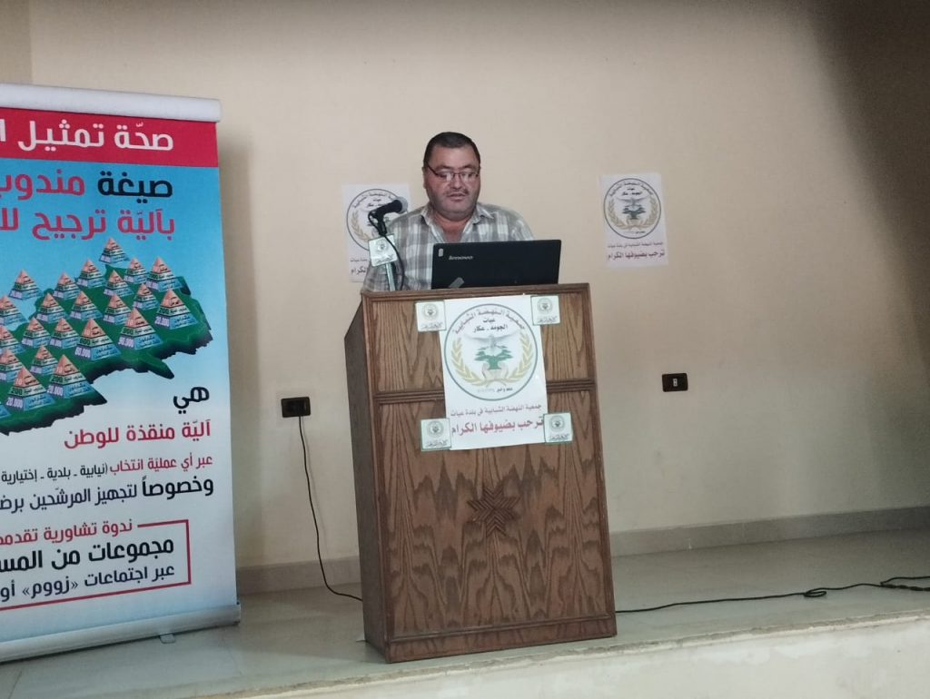 اقامت جمعية النهضة الشبابية في الجومة عكار عصر اليوم الاحد ندوة علمية في قاعة مسجد عمر بن الخطاب رضي الله عنه في محلة تلة عيات بالتعاون مع مؤسس تجمع صحة تمثيل الاغلبية مندوب المية ترجيح لا ترشيح الاستاذ مروان يسير حيث حضر اضافة الى الاستاذ يسير كل من السادة رئيس جمعية النهضة الشبابية السيد عامر نجيب والمختار السابق الحاج محمد شهير نجيب ورئيس اللجنة الفنية والثقافية في الجمعية الاستاذ المخرج لؤي نجيب وتم اعداد الندوة من قبل الاستاذة نسرين الخطيب .