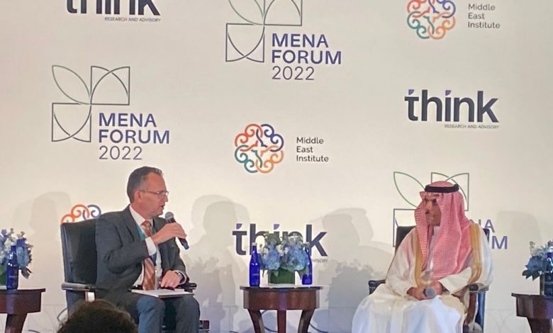 في نيويورك، على هامش أعمال الجمعية العامة للأمم المتحدة، وخلال مشاركته بمنتدى نظّمته مؤسسة الأبحاث (ثينك) التابعة للمجموعة السعودية للأبحاث والاعلام بالتعاون مع معهد الشرق الأوسط، وفي حوار أداره رئيس المعهد الدكتور بول سالم، أعرب وزير الخارجية السعودي الأمير فيصل بن فرحان عن قلق بلاده من حصول إيران على سلاح نووي، محذّراً من خطورة ذلك على المنطقة والأمن الدولي.