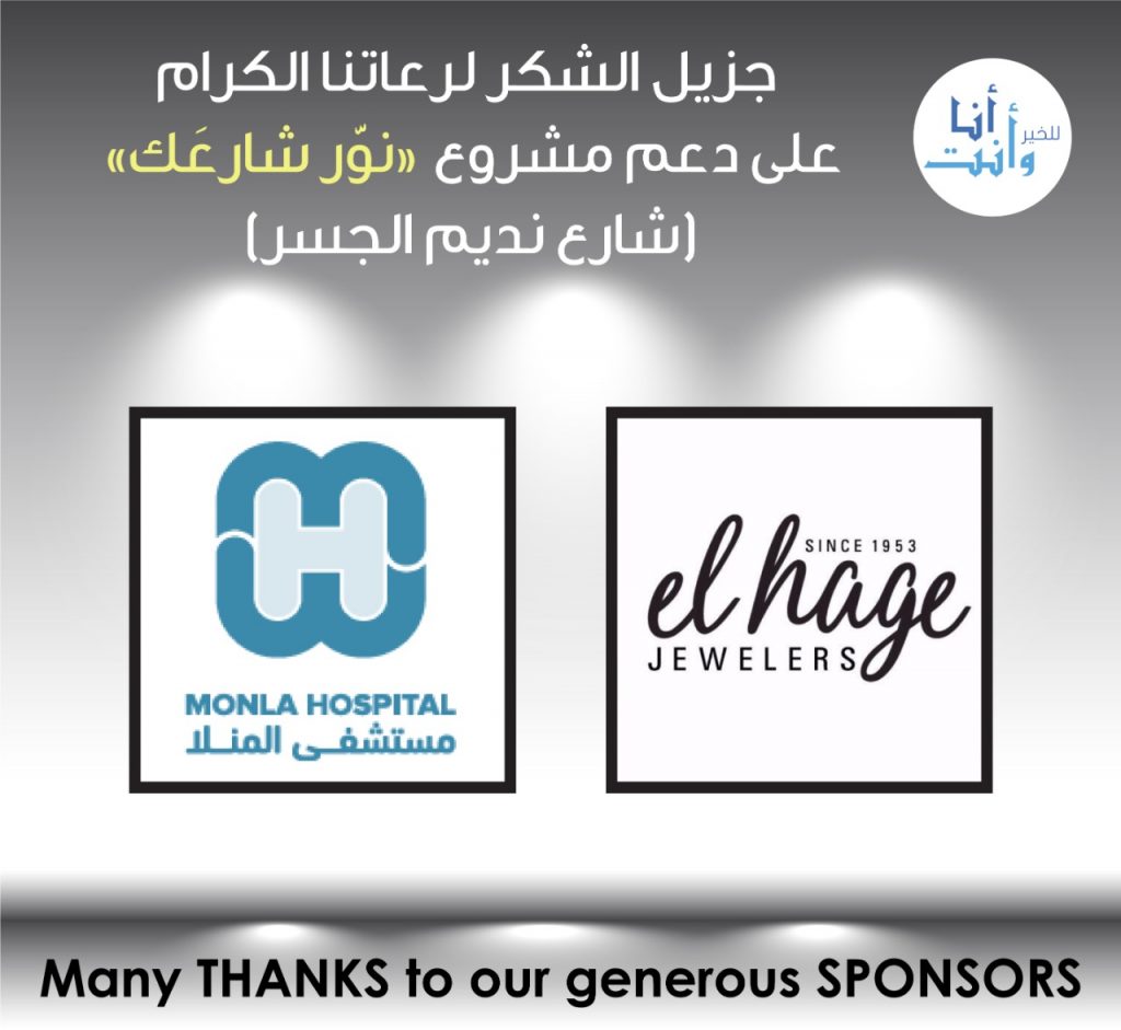 قامت جمعية للخير أنا وأنت بإنارة شارع نديم الجسر وهي المرحلة الثانية من مشروع “نوّر شارعك”.وقد أمّنَت إدارة مستشفى “المنلا” التغذية الكهربائية، وقدمت إدارة مجوهرات الحاج التمويل من أكلاف التمديدات والمصابيح الكهربائية. وأكدت رئيسة الجمعية ياسمين غمراوي زيادة أن مشروع إنارة شوارع طرابلس يأتي ضمن أولوية مشاريعها الإنمائية لتحسين صورة المدينة وإعادة أمنها، مضيفة أن مثل هذه المشاريع تساعد على تخفيف السرقات التي شهدتها مؤخرًا المدينة في ظل العتمة القسرية التي عاشتها. ودعت غمراوي جميع أهالي طرابلس للعمل سويًّا من أجل إنجاح مشروع “نوّر شارعك” مؤمنة أنا النور حياة وأمان.