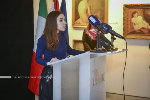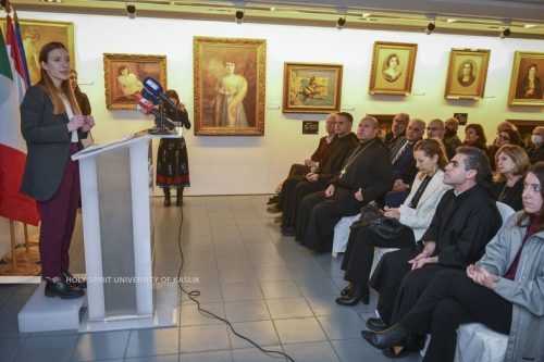 بدايةً، كانت كلمة افتتاحية لغيا افرام أشارت فيها إلى أنّ “هذا المعرض يسلّط الضوء، أولاً، على أهمية برنامج حفظ وترميم الملكية الثقافية والفن المقدس الذي بدأ في الجامعة منذ العام 2018 بهدف تعزيز الإرث الثقافي في بلدنا عبر إعداد مهنيين ذوي خبرة وفق المعايير الأوروبية، وثانيًا، على التعاون بين إيطاليا ولبنان في مجال الإرث الثقافي وأهمية إعطاء المرممين الشباب فرصةً حيث أظهروا من خلال هذه التجربة الدولية أنّ الترميم يمكن أن يكون أيضًا فرصةً للأجيال الشابة اللبنانية”.