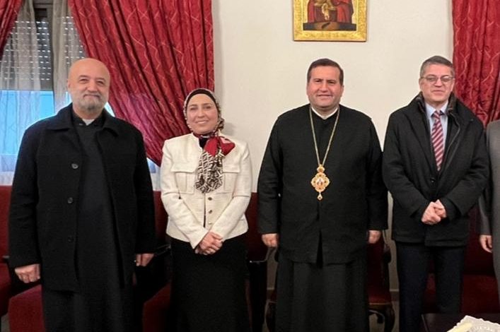الدكتورة عائشة يكن والمهندس فادي عبيد في زيارة تهنئة لسيادة مطران الروم الكاثوليك ادوار ضاهر