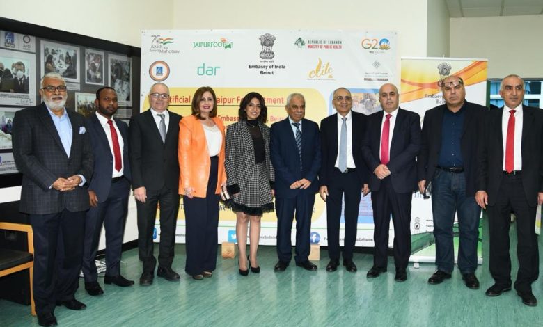 بمناسبة العيد الوطني 74 للهند ، تم افتتاح مخيم جايبور لتركيب الأطراف الصناعية للقدم في 26 يناير 2023 في مستشفى رفيق الحريري الجامعي في بيروت تحت رعاية وزارة الشؤون الخارجية في الهند في إطار برنامج “الهند من أجل الإنسانية” وبتنفيذ من BMVSS “قدم جايبور” وهي أكبر منظمة في العالم لإعادة تأهيل الأشخاص ذوي الاحتياجات الخاصة في الأطراف السفلية.