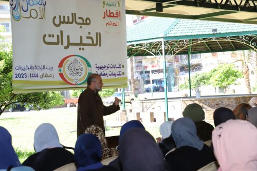 حيث افتتح اللقاء مدير العلاقات العامة في البيت الاستاذ رفعت حولا مرحبا بالحضور وبالشيخ فراس بلوط في المجلس الثامن ضمن مجالس الخيرات التي ستسقبل طيلة شهر رمضان آلاف الاسر المستفيدة من كافة المناطق ليتلقوا الدعم النفسي والتربوي والديني في شهر رمصان المبارك.