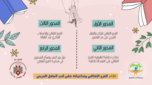 تقيم جماعة أدب الطّفل العربيّ مؤتمرها الخامس بعنوان “الغزو الثقافي وتداعياته على أدب الطّفل العربيّ”، وهذه المرّة بالتعاون مع تجمّع المعلمين في لبنان بمشاركة مجموعة من كبار المتخصصين بأدب الطفل من أنحاء الوطن العربي؛ من لبنان والأردن ومصر والجزائر والمغرب والكويت.